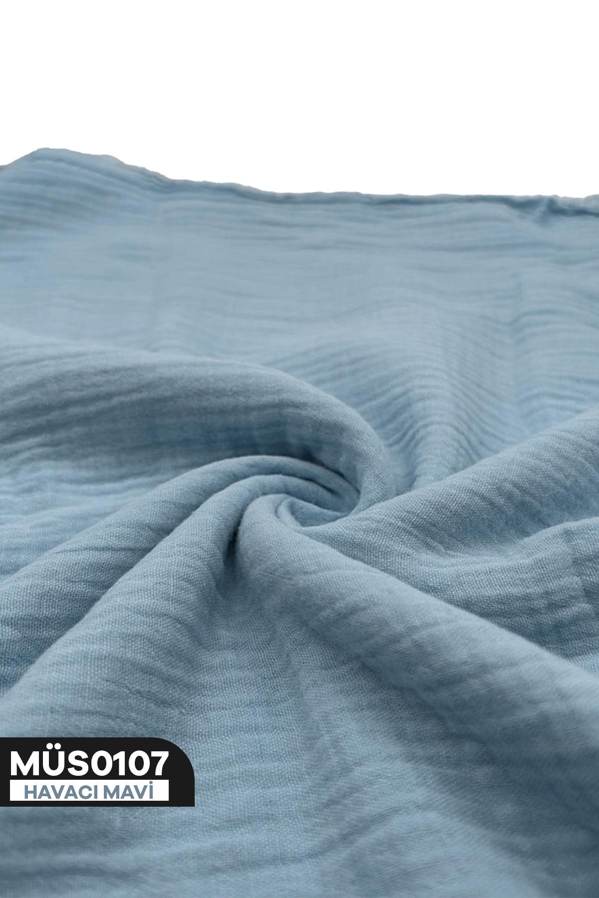 2Kat Düz Renk Müslin kumaş MÜS0107-HAVACI MAVİ (MÜS0107)