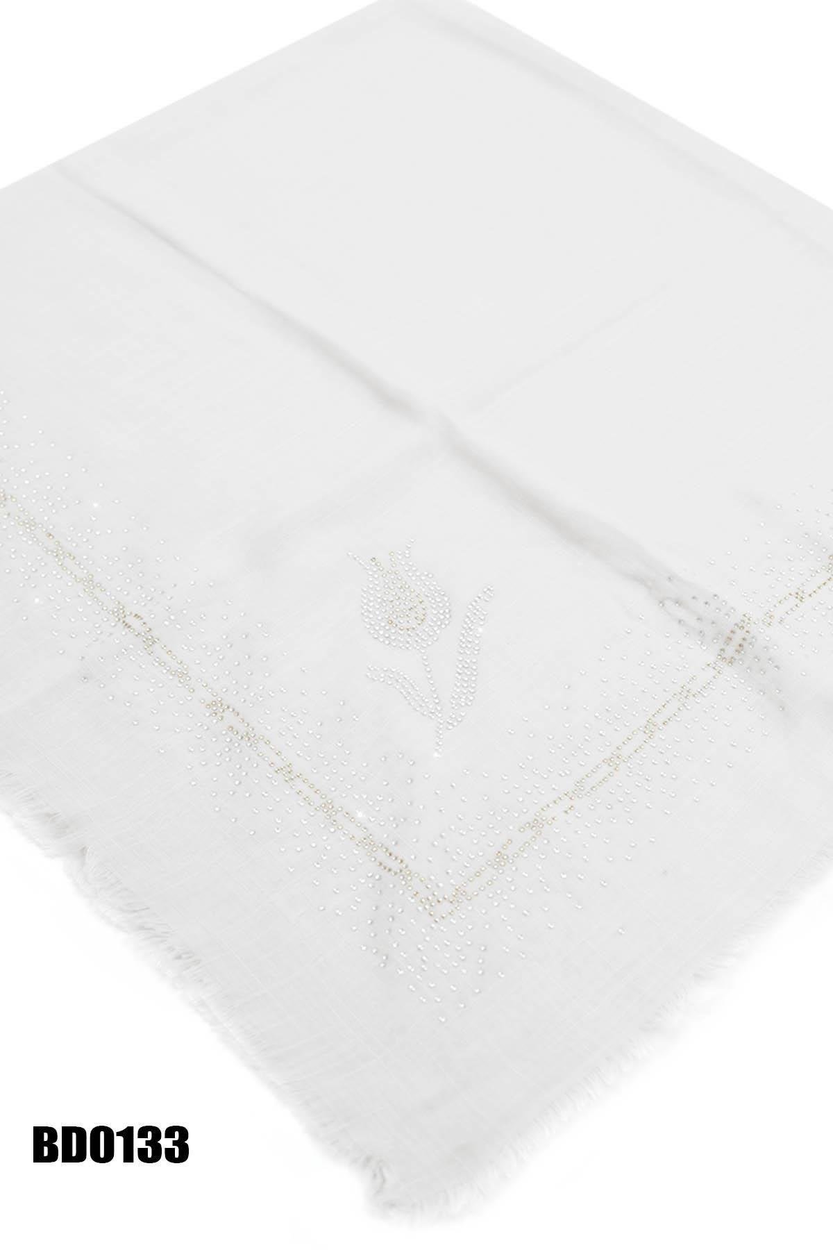 Taşlı Desenli Düz Flamlı Eşarp BD0133-5833 (BD0133-5833)